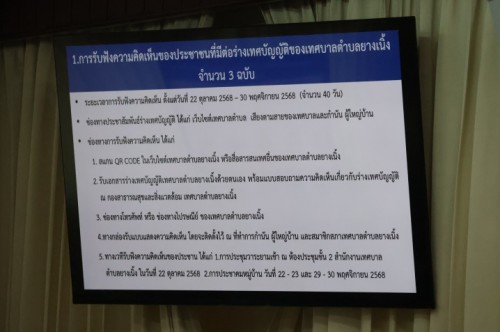 เทศบาลตำบลยางเนิ้ง ได้ดำเนินการประชุม เพื่อรับฟังปัญหาฯลฯ ความต้องการฯลฯ และแลกเปลื่ยนความคิดเห็นฯลฯ #วาระยามเช้า ประจำเดือน ตุลาคม พ.ศ. 2568 โดยนายโชติอนันต์ เเก้วกาวิล นายกเทศมนตรีตำบลยางเนิ้ง พร้อมคณะผู้บริหาร สมาชิกสภาเทศบาลฯ ปลัดเทศบาล ผู้อำนวยการกองทุกกอง หัวหน้าสำนักปลัด ผู้ทรงคุณวุฒิฯ หัวหน้าส่วนราชการ พนักงานเทศบาล กำนัน-ผู้ใหญ่บ้าน ผู้นำชุมชน และคณะกรรมการหมู่บ้าน เข้าร่วมประชุม ณ ห้องประชุมเทศบาลตำบลยางเนิ้ง
