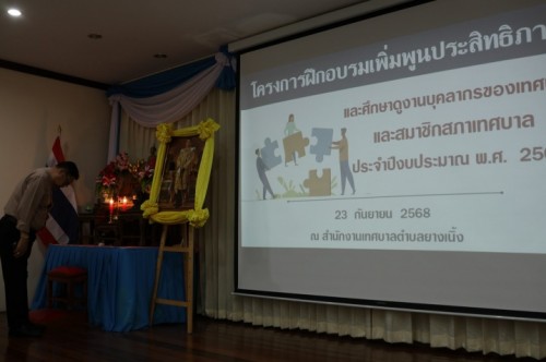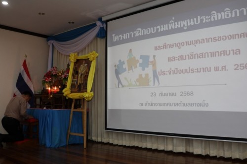 โครงการฝึกอบรมเพิ่มพูนประสิทธิภาพและศึกษาดูงานบุคลากรของเทศบาลและสมาชิกสภาเทศบาล ประจำปีงบประมาณ พ.ศ. 2568