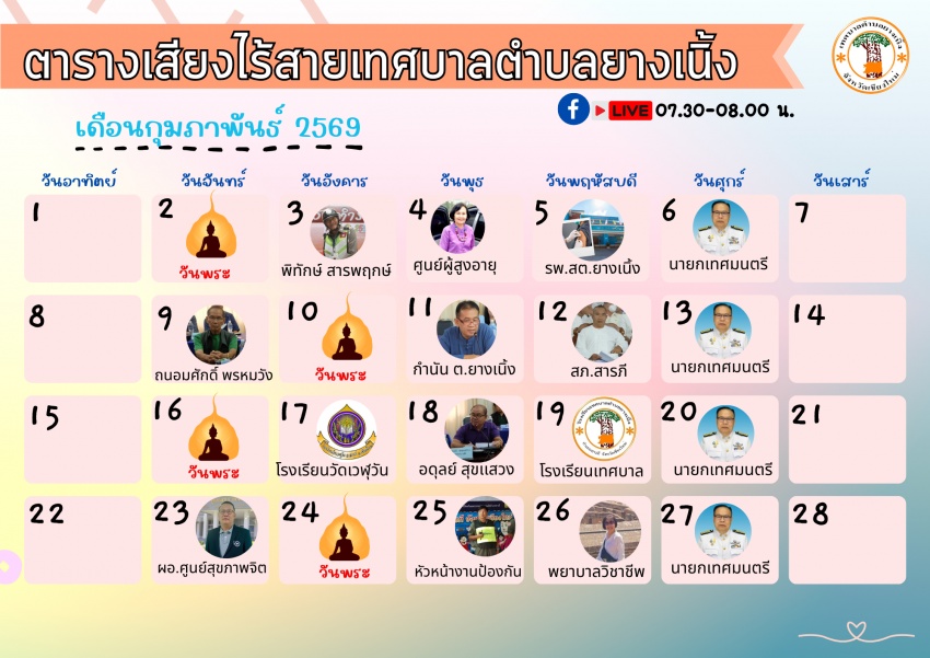 ตารางเสียงไร้สาย ประจำเดือนกุมภาพันธ์ 2569