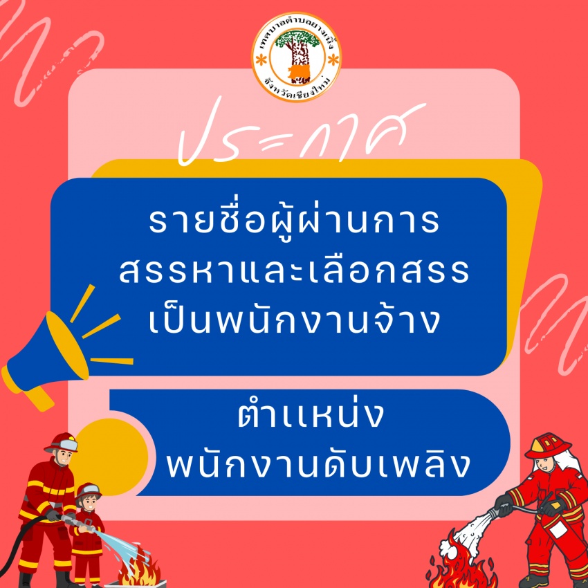 ประกาศบัญชีรายชื่อผู้ผ่านการสรรหาและเลือกสรรเป็นพนักงานจ้าง (ตำแหน่งพนักงานดับเพลิง)