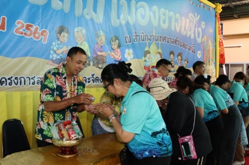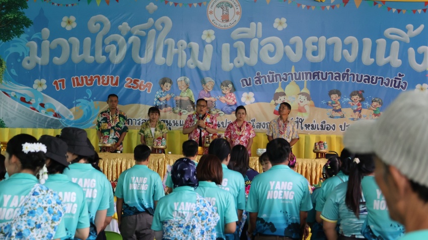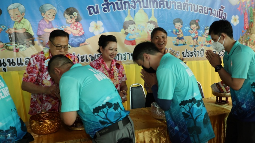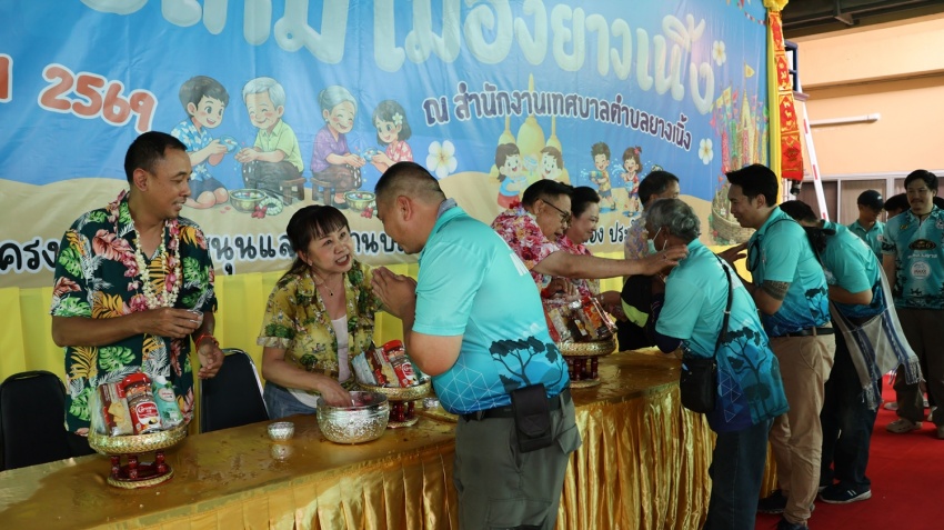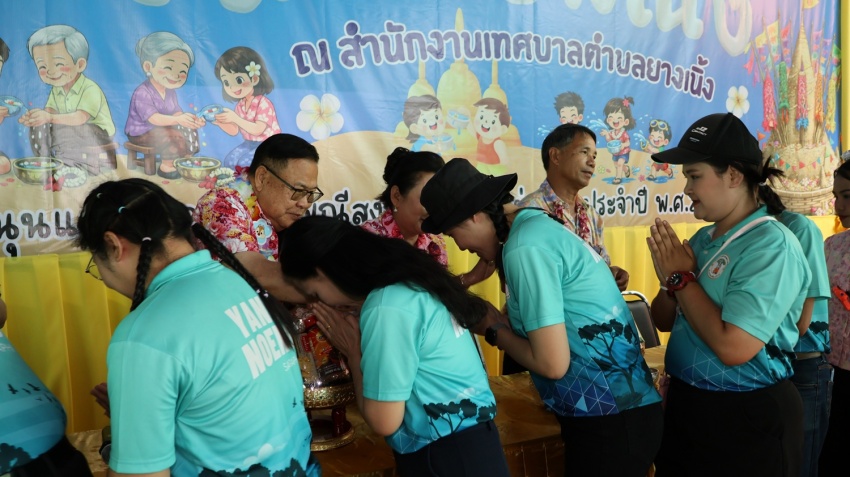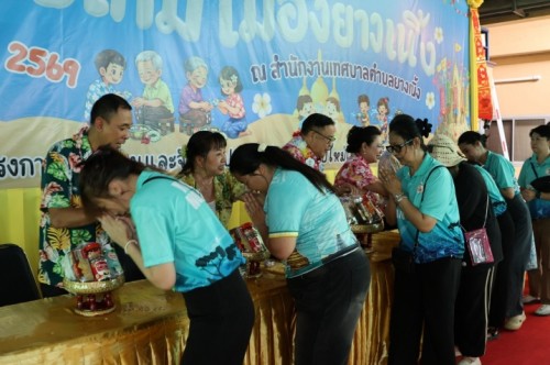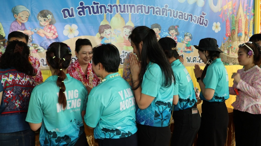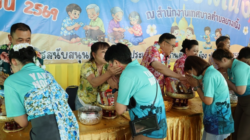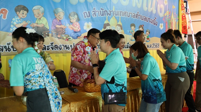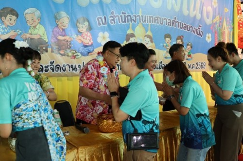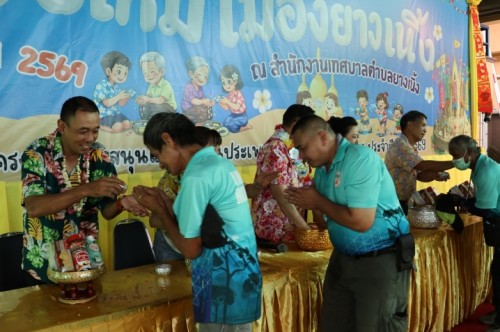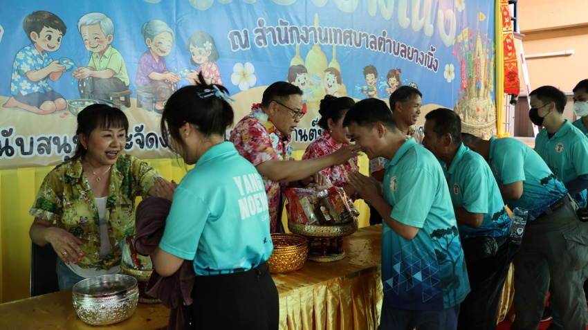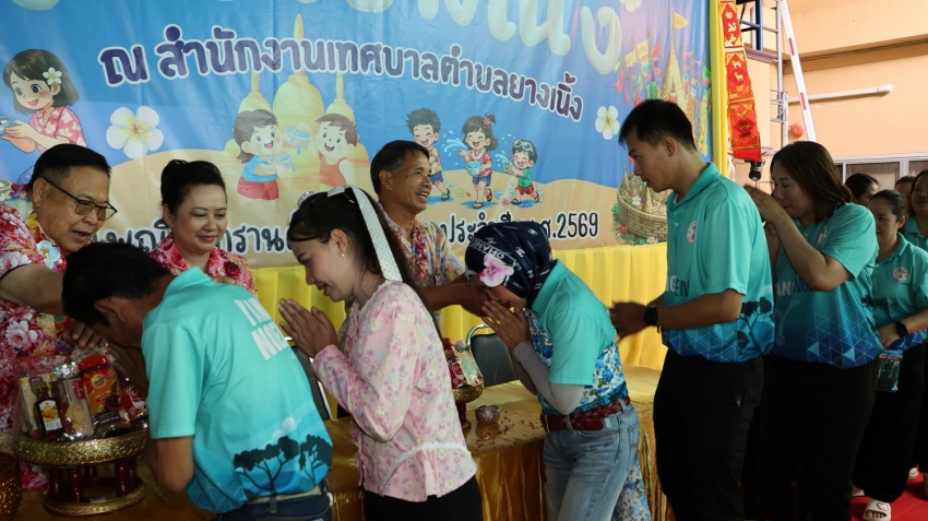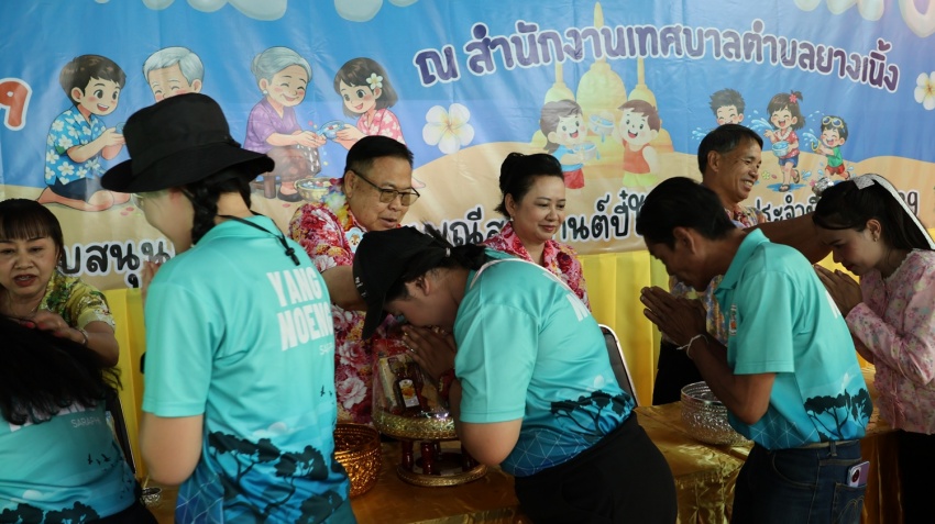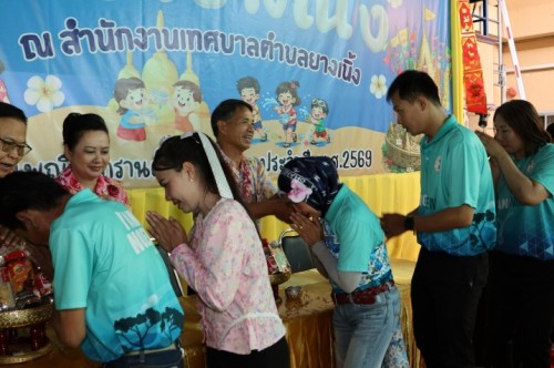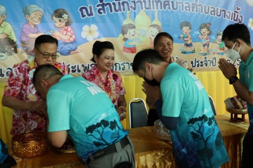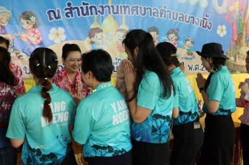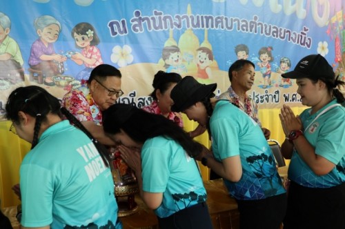 พนักงานเทศบาลตำบลยางเนิ้ง ร่วมสระเกล้าดำหัว ขอขมาและขอพรปี๋ใหม่ จากคณะผู้บริหาร
