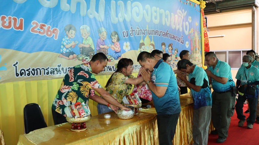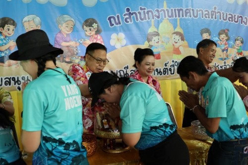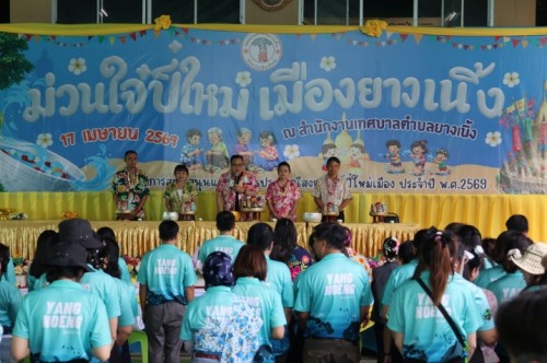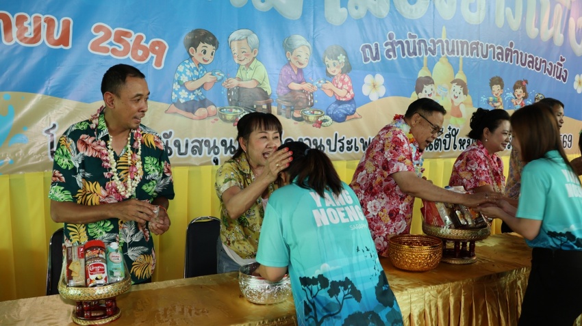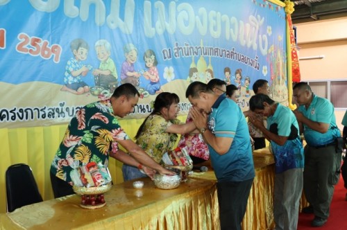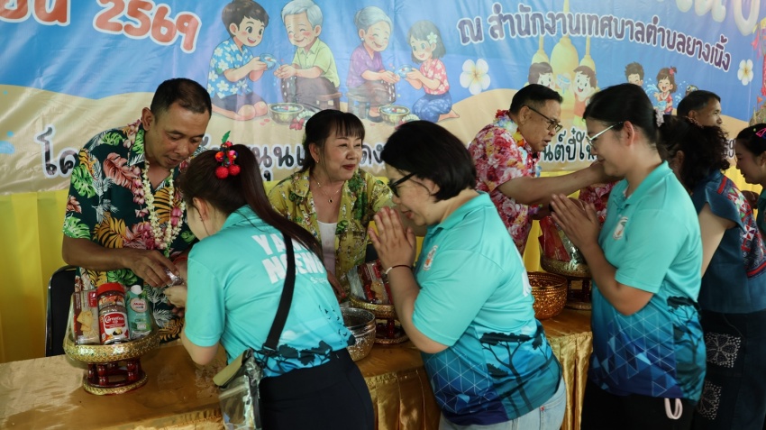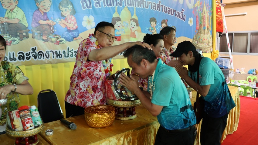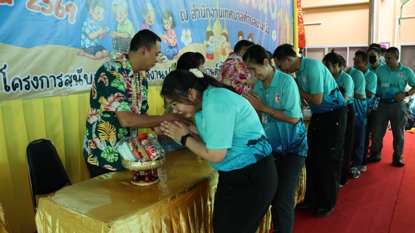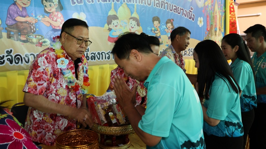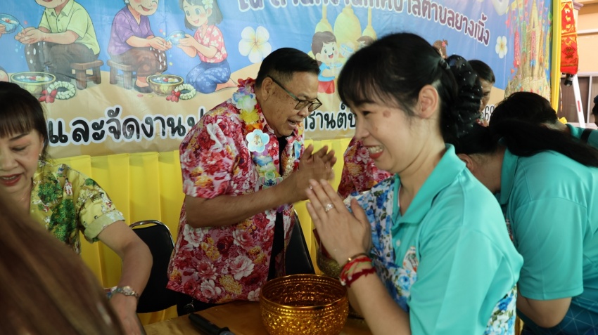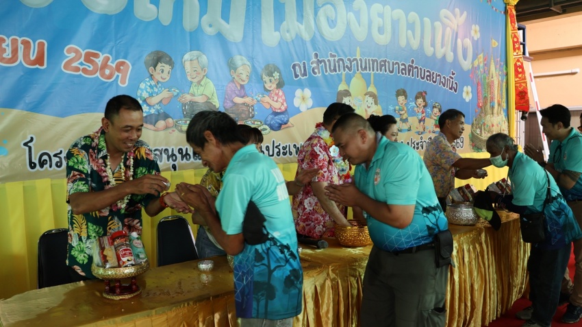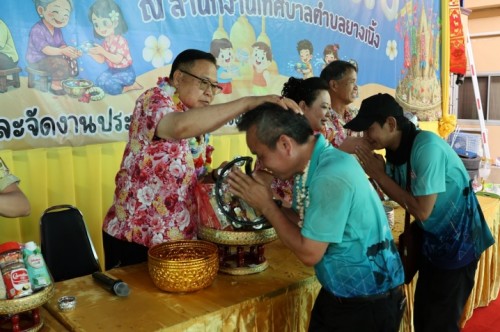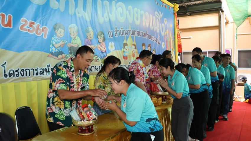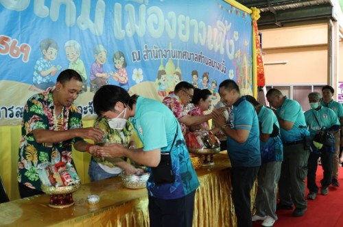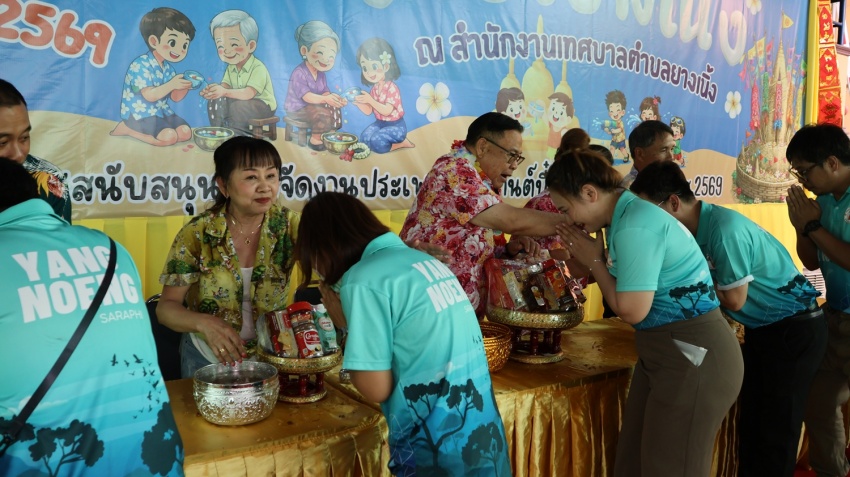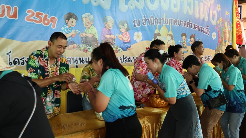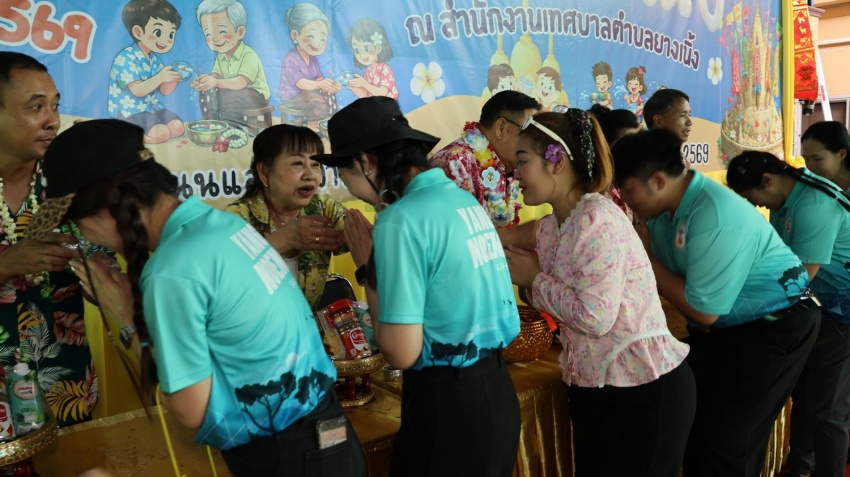 พนักงานเทศบาลตำบลยางเนิ้ง ร่วมสระเกล้าดำหัว ขอขมาและขอพรปี๋ใหม่ จากคณะผู้บริหาร
