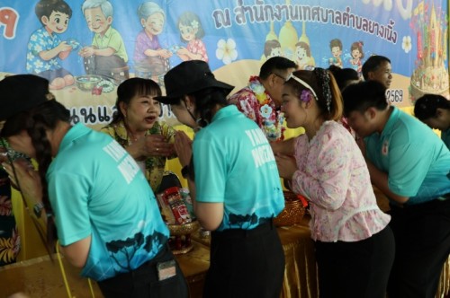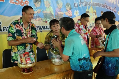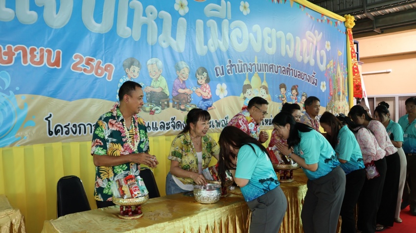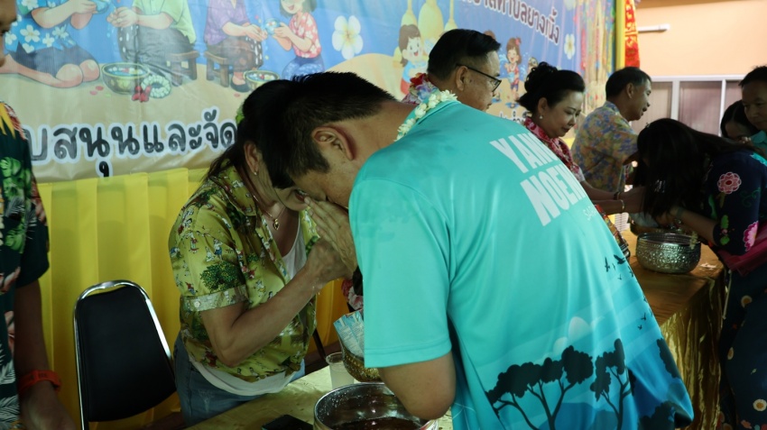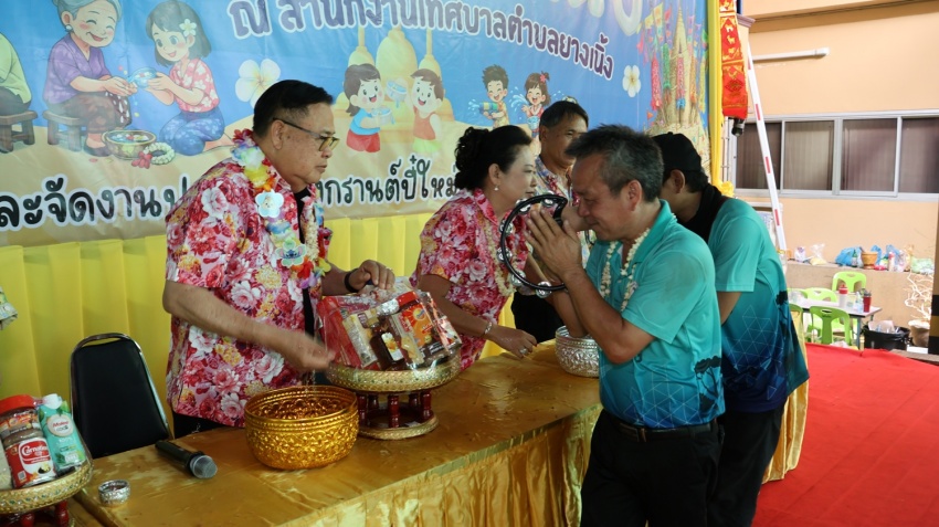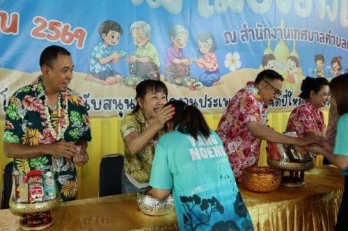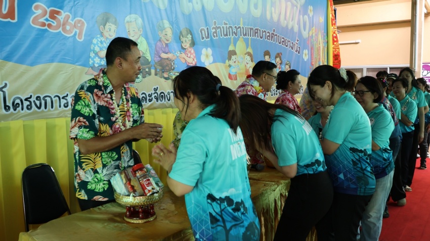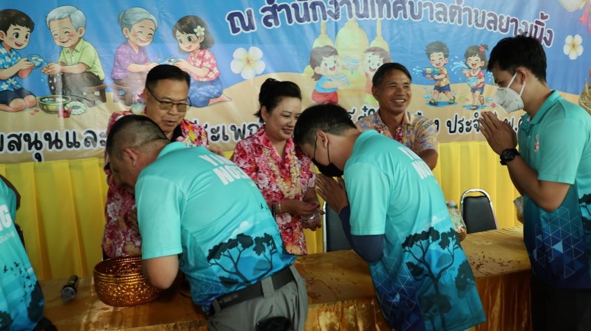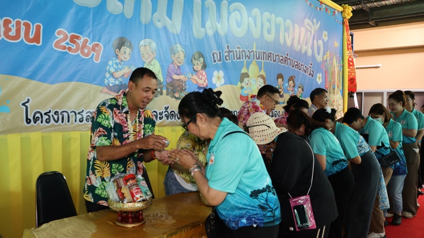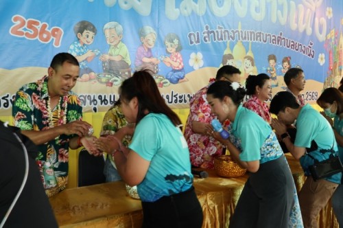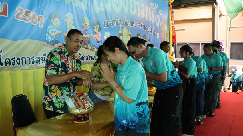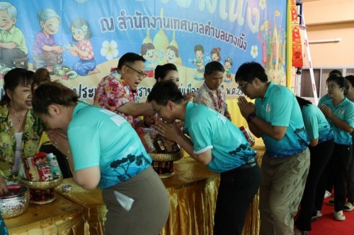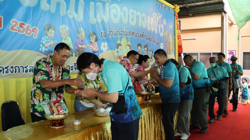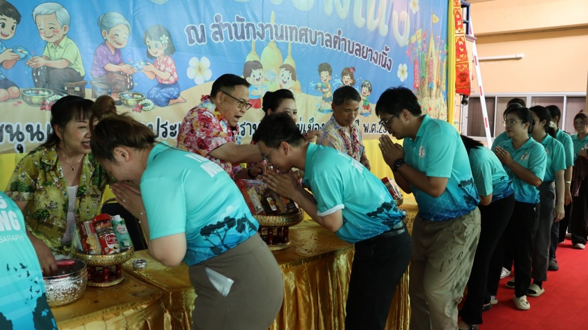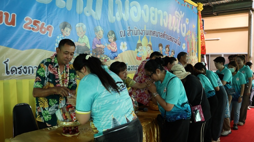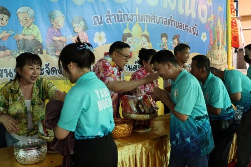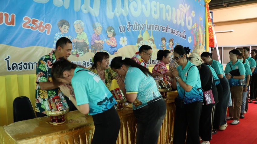 พนักงานเทศบาลตำบลยางเนิ้ง ร่วมสระเกล้าดำหัว ขอขมาและขอพรปี๋ใหม่ จากคณะผู้บริหาร