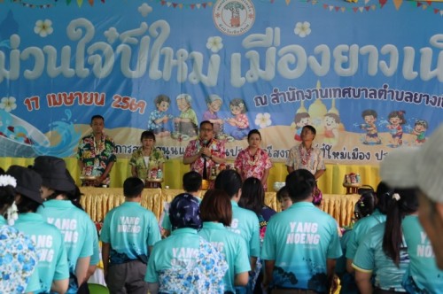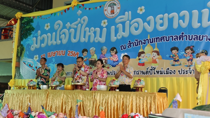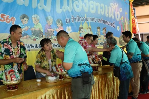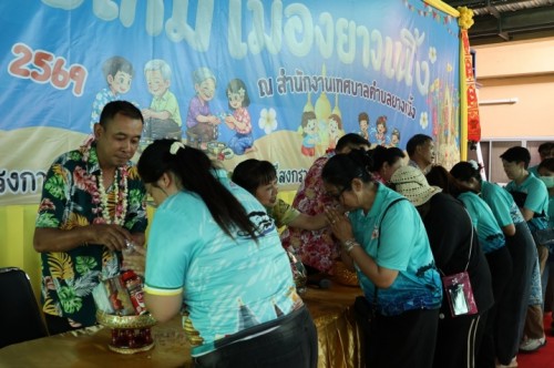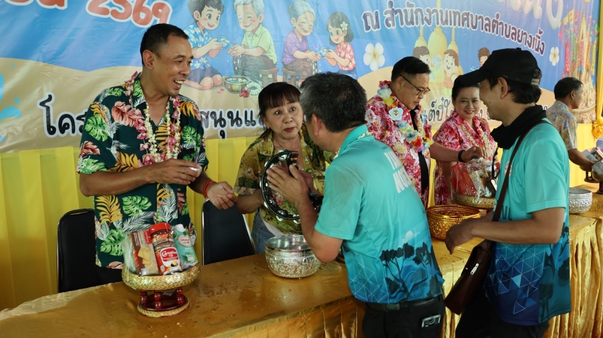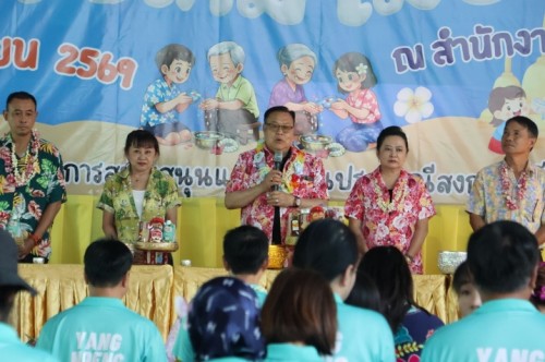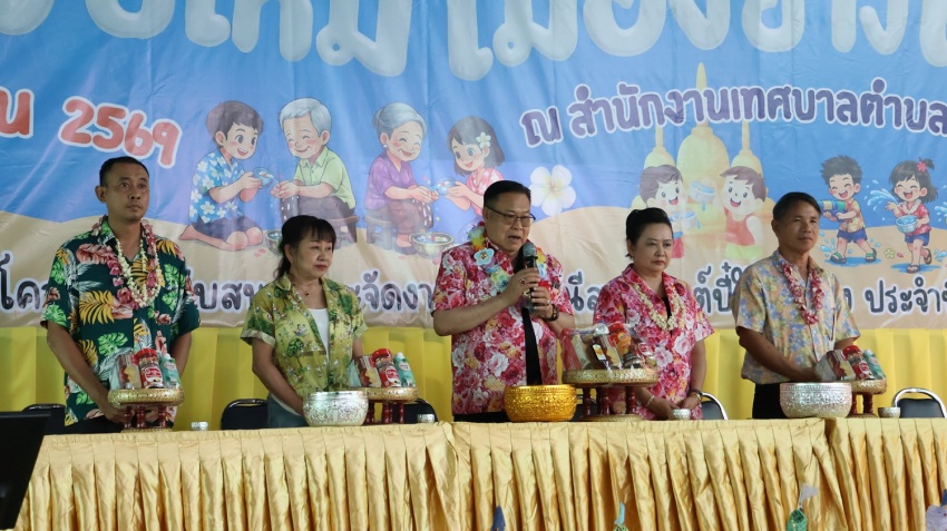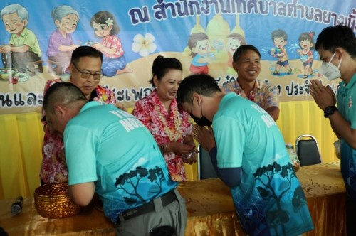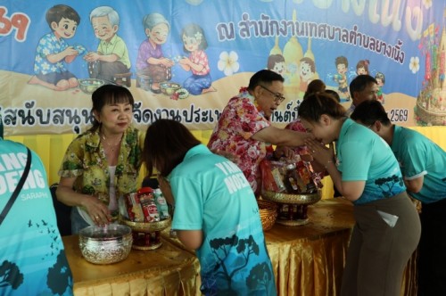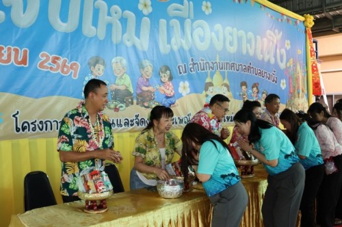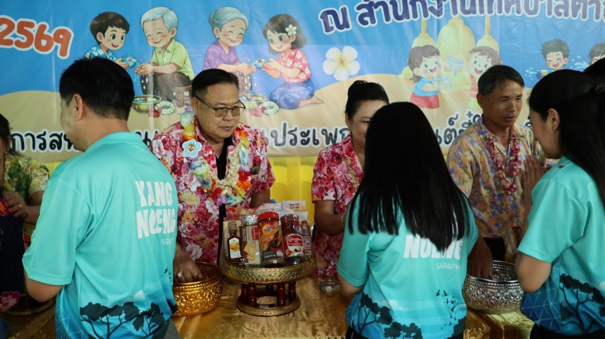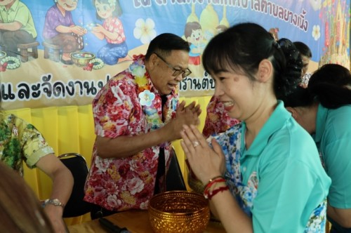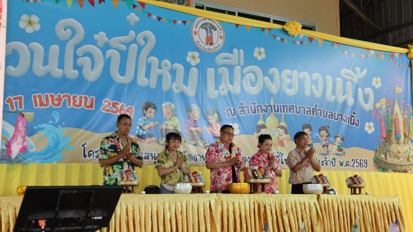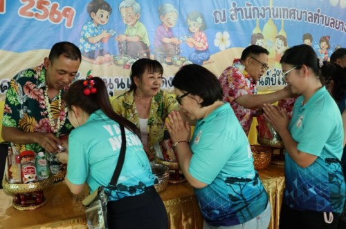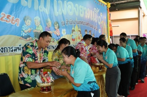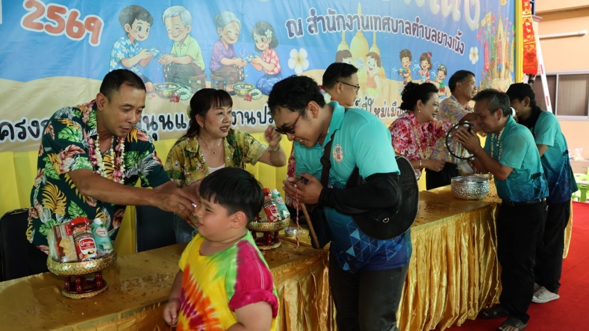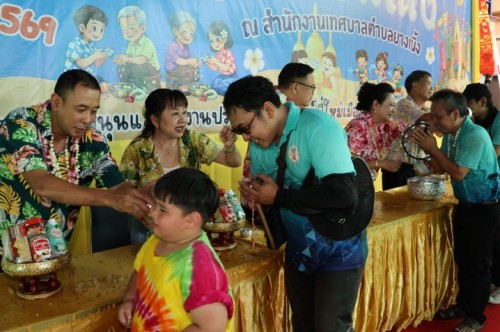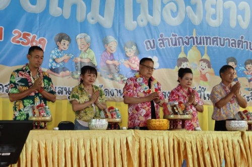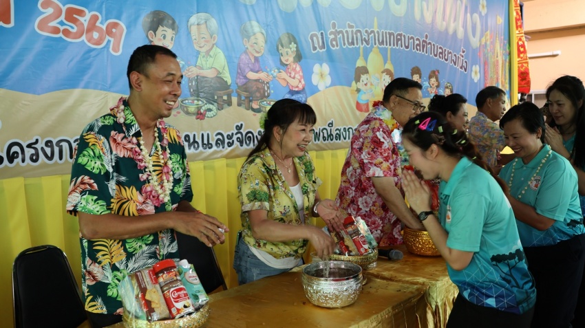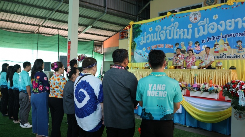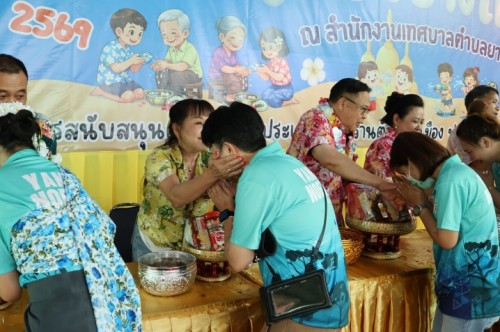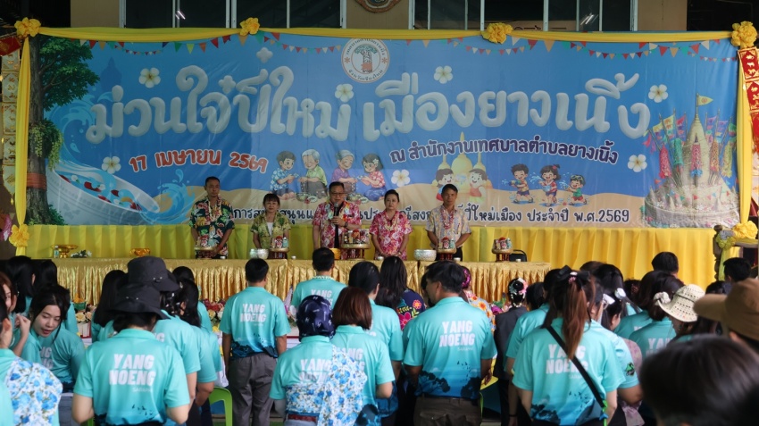 พนักงานเทศบาลตำบลยางเนิ้ง ร่วมสระเกล้าดำหัว ขอขมาและขอพรปี๋ใหม่ จากคณะผู้บริหาร
