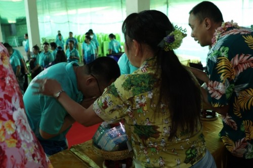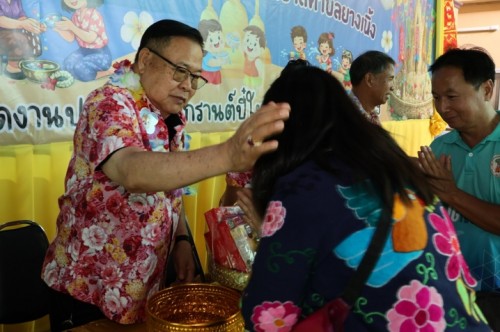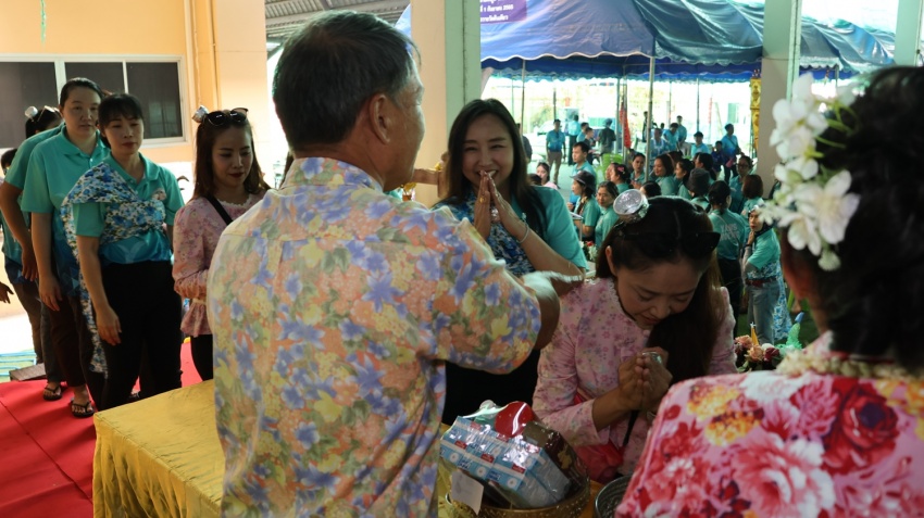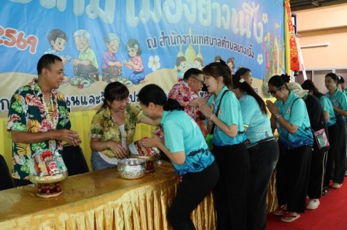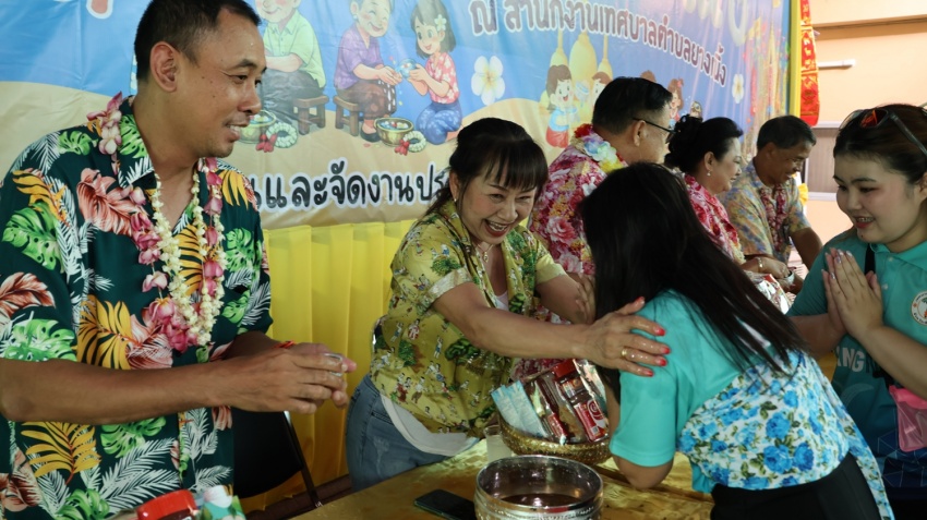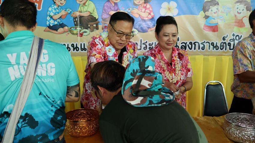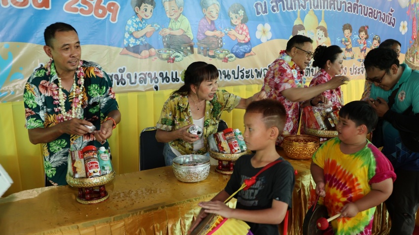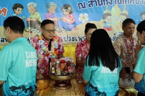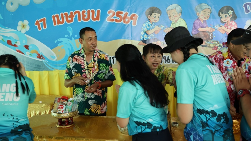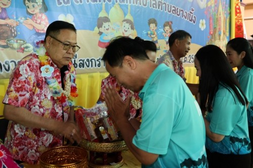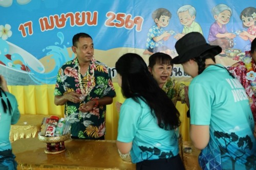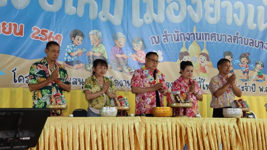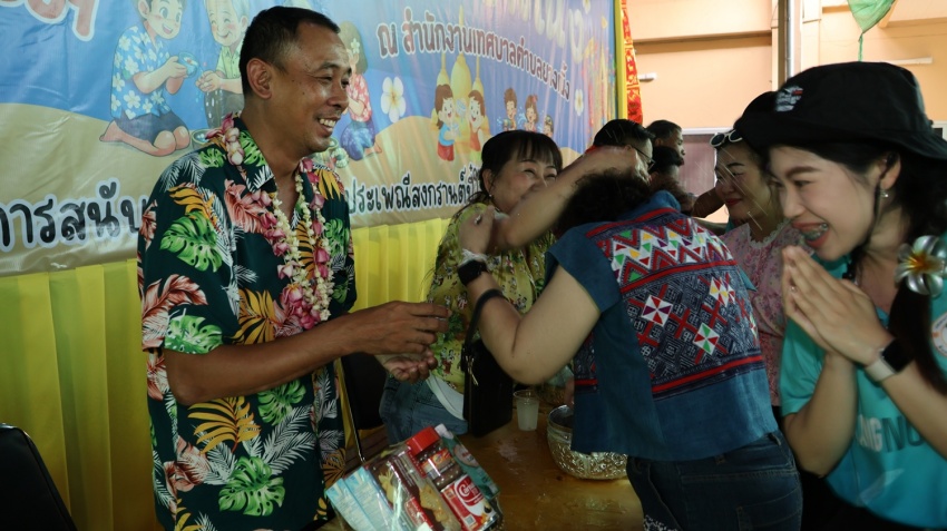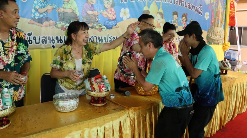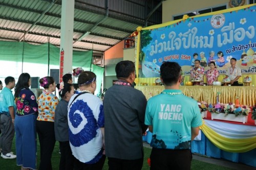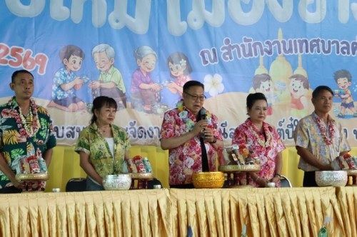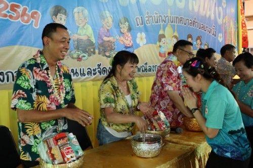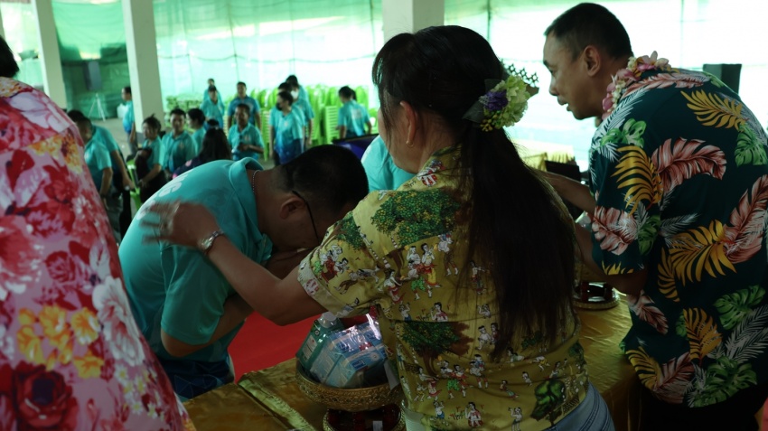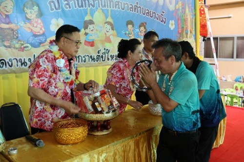 พนักงานเทศบาลตำบลยางเนิ้ง ร่วมสระเกล้าดำหัว ขอขมาและขอพรปี๋ใหม่ จากคณะผู้บริหาร