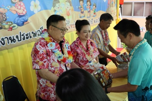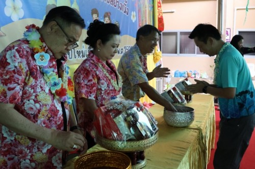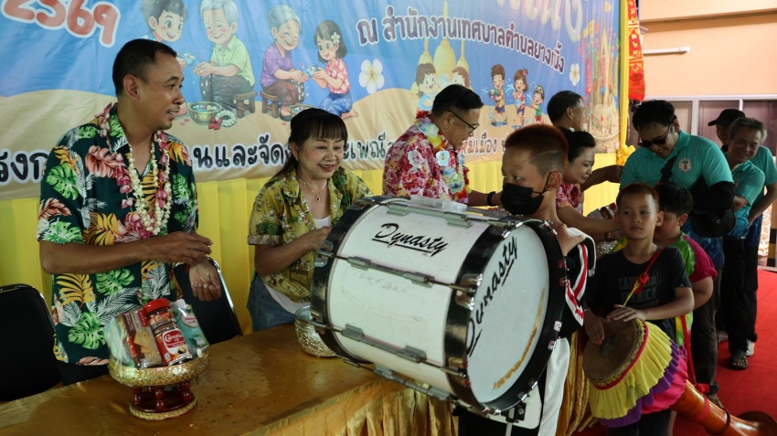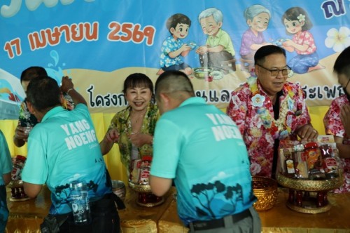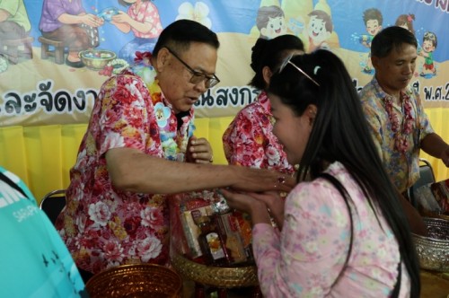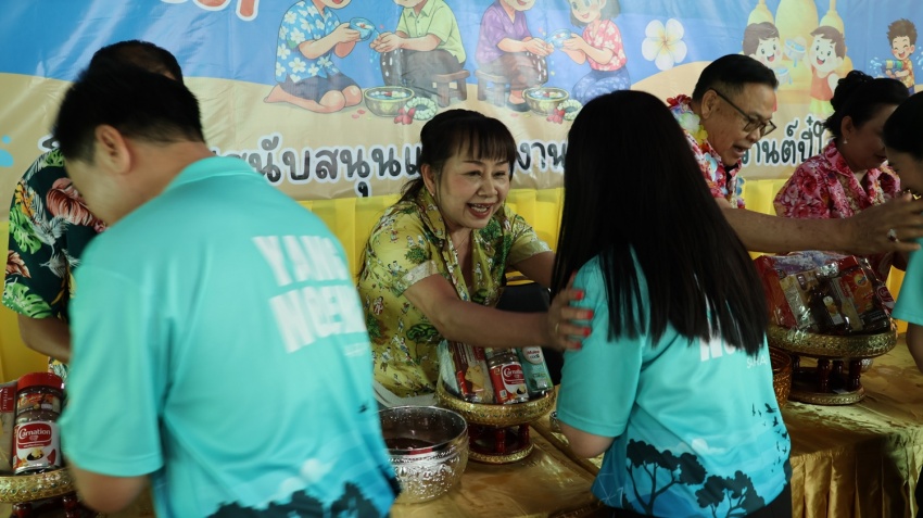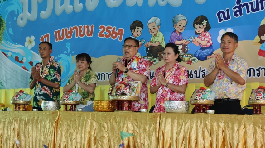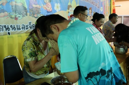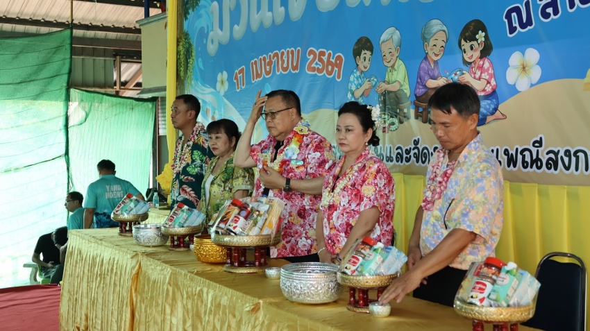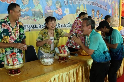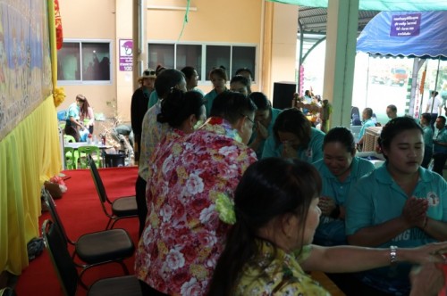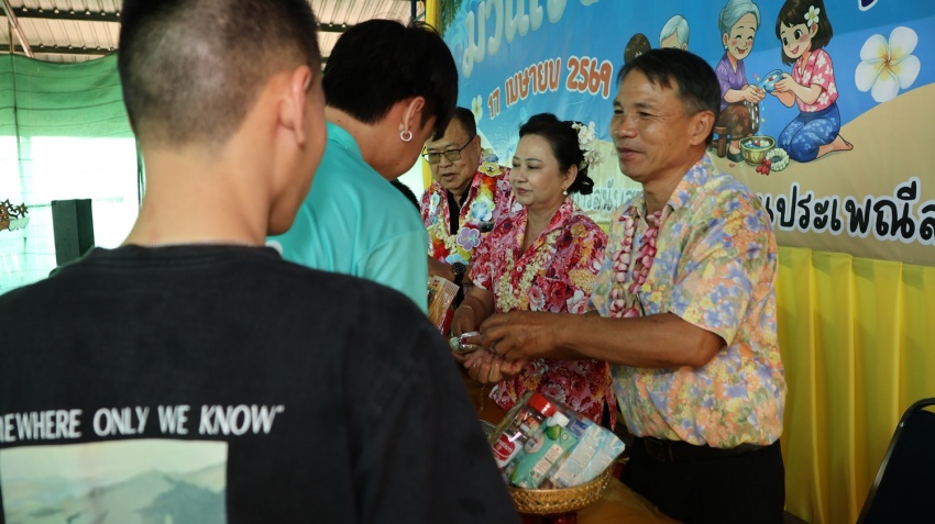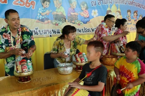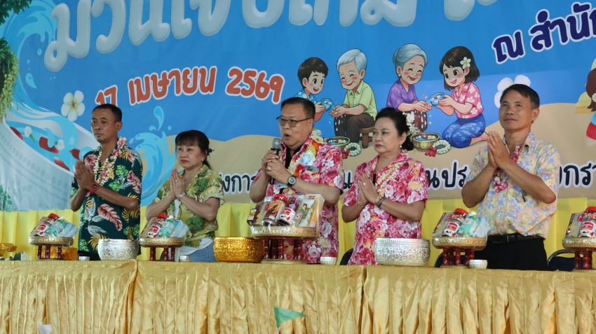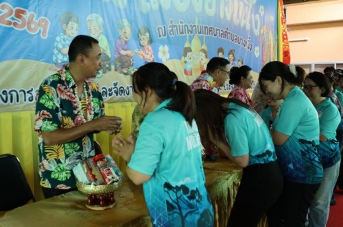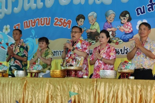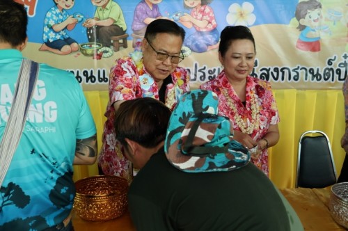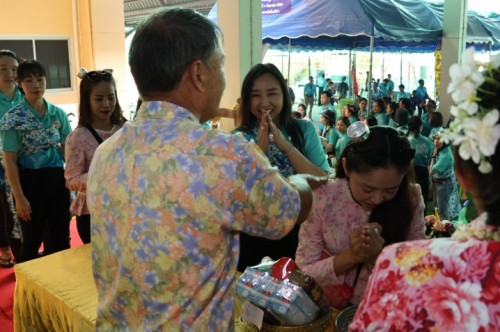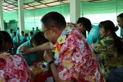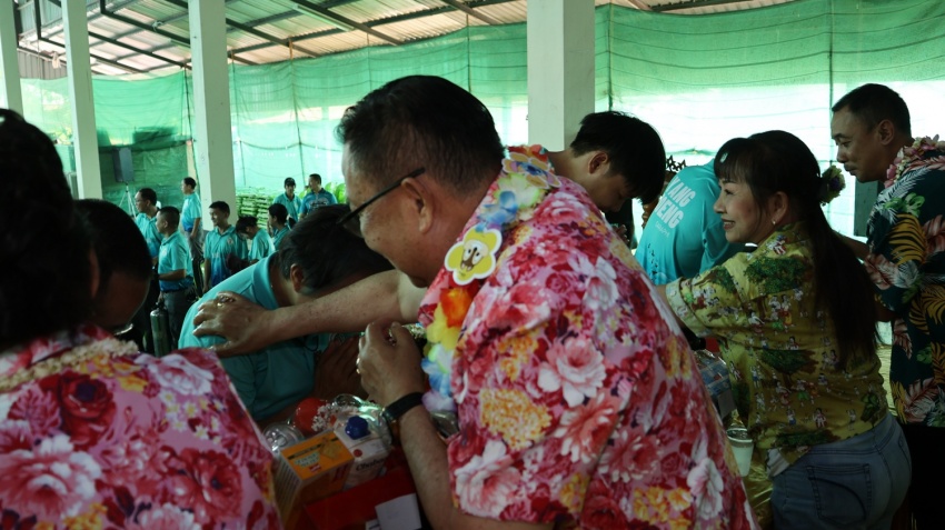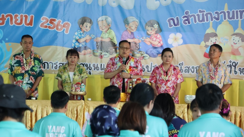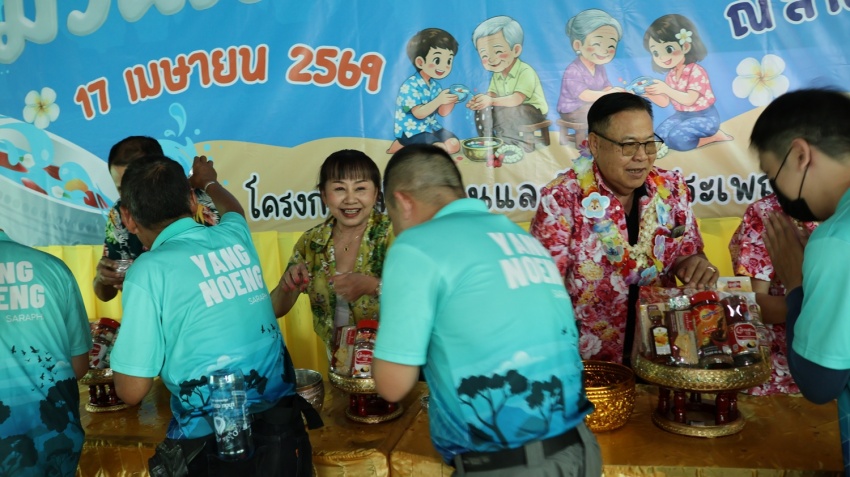 พนักงานเทศบาลตำบลยางเนิ้ง ร่วมสระเกล้าดำหัว ขอขมาและขอพรปี๋ใหม่ จากคณะผู้บริหาร