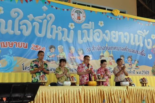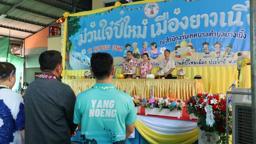 นายสมชาติ วงค์ไฝ ปลัดเทศบาลตำบลยางเนิ้ง พร้อมด้วยสมาชิกสภาเทศบาลตำบลยางเนิ้ง หัวหน้าส่วนราชการ และพนักงานเทศบาลตำบลยางเนิ้ง ร่วมสระเกล้าดำหัว ขอขมาและขอพรปี๋ใหม่เมือง จากนายโชติอนันต์แก้วกาวิล นายกเทศมนตรีตำบลยางเนิ้ง และคณะผู้บริหาร ณ สำนักงานเทศบาลตำบลยางเนิ้ง