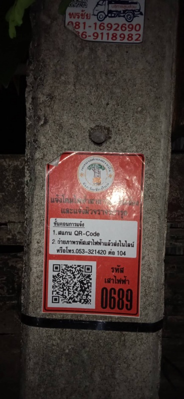 รหัสเสาไฟฟ้า 0689 อยู่ซอย ตรงข้าม โรงรับจำนำ (ซอยตัน)