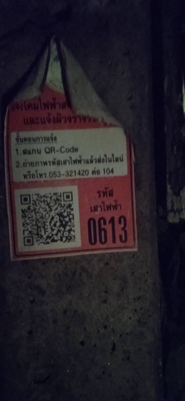 รหัสเสาไฟฟ้า 0613 ตั้งอยู่ ถนนสายพระนอน - สันป่าสัก