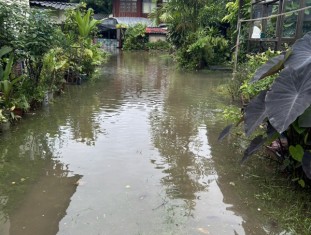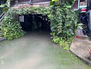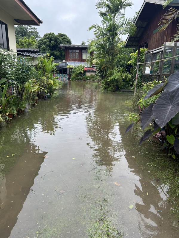 น้ำฝนท่วมขังภายในบริเวณบ้าน