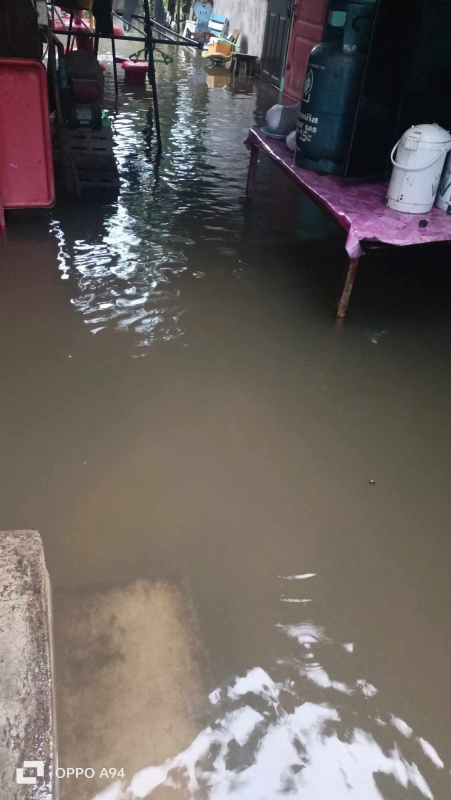 น้ำท่วมขังสาเหตุมาจากน้ำล้นลำเหมืองและปริมาณน้ำฝน หมู่ที่ 6 บริเวณวัดต้นเหียว เดือดร้อนโดยประมาณ 6 หลัง