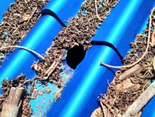 กิ่งไม้ต้นยางตกใส่หลังคาบ้านแตก