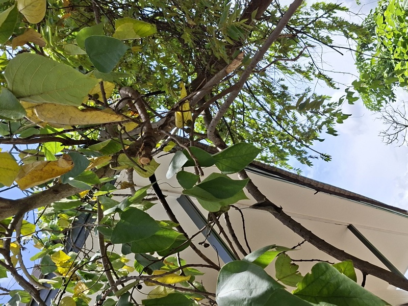 ต้นไม้ล้มมาโดนชายคาบ้านและเข้ามาในบริเวณบ่าน