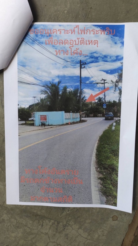 ขออนุเคราะห์ผู้เกี่ยวข้อง ขอไฟกระพริบติดเสาไฟฟ้าหรือ ความเหมาะสมการติดตั้ง เนื่องจากเป็นทางโค้งอันตรายและเกิดอุบัติเหตุบ่อยครั้ง ตามสถิติที่บันทึกไว้...