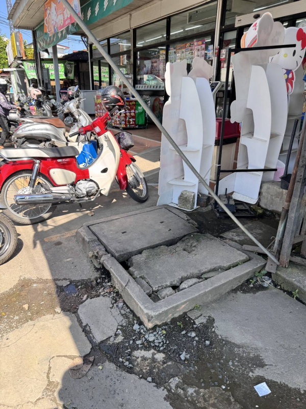 ฝาท่อน้ำชำรุด บริเวณหน้าร้าน 7-11 สาขาสารภี1