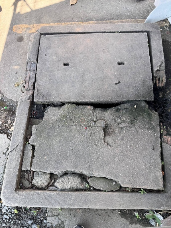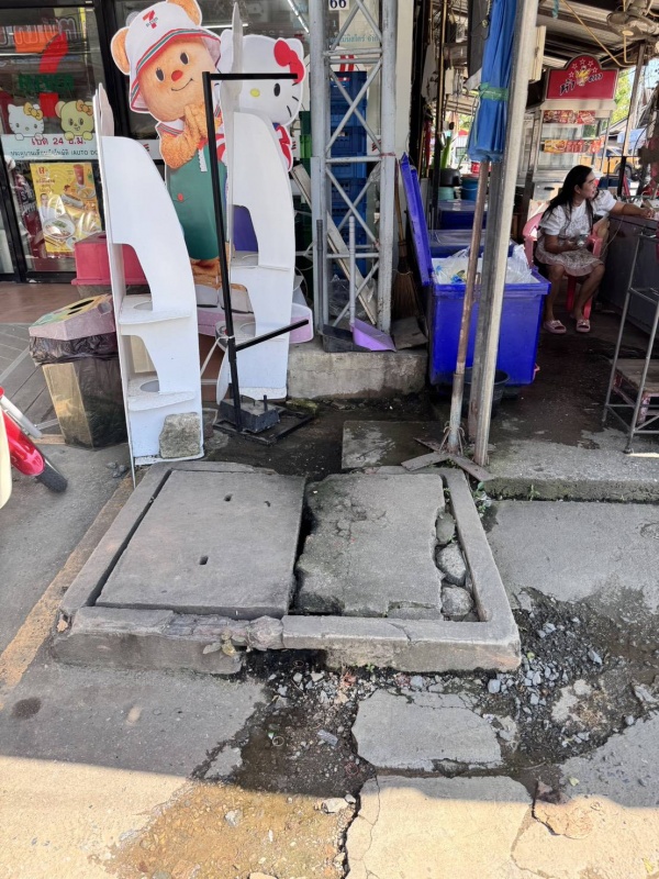 ฝาท่อแตก/ชำรุด เสี่ยงต่อการเกิดอุบัติเหตุ ขอให้เจ้าหน้าที่เข้าตรวจสอบและดำเนินการซ่อมแซมด้วยค่ะ