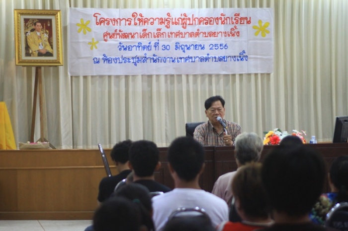 ศูนย์พัฒนาเด็กเล็กเทศบาลตำบลยางเนิ้ง ได้จัดโครงการให้ความรู้ผู้ปกครองนักเรียนของศูนย์พัฒนาเด็กเล็กเทศบาลตำบลยางเนิ้ง เพื่อสร้างความสัมพันธืที่ดีระหว่างครูผู้สอนและผู้ปกครองนักเรียน ให้ผู้ปกครองนักเรียนมีความรู้ความเข้าใจในการเลี้ยงดูเด็ก และเพื่อให้ผู้ปกครองได้นำเทคนิคต่างๆ จากการอบรมไปประยุกต์ใช้ในการเลี้ยงดูเด็ก ฯลฯ ซึ่งได้จัดขึ้นเมื่อวันที่ ๓๐ มิถุนายน ๒๕๕๖ ณ ห้องประชุมเทศบาลตำบลยางเนิ้ง
