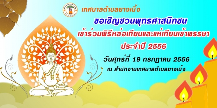 ขอเชิญชวนพุทธศาสนิกชนเข้าร่วมพิธีหล่อเทียนและแห่เทียนเข้าพรรษา ประจำปี ๒๕๕๖