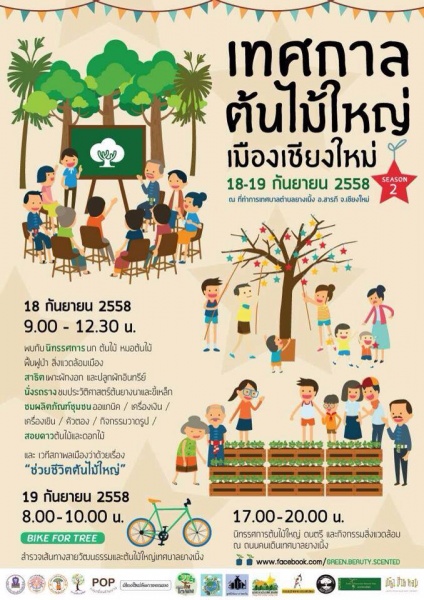 ขอเชิญร่วมนิทรรศการเทศกาลต้นไม้ใหญ่เมืองเชียงใหม่ วันที่ ๑๘-๑๙ กันยายน ๒๕๕๘ ณ บริเวณสำนักงานเทศบาลตำบลยางเนิ้ง และลานกิจกรรมถนนคนเดินยางเนิ้ง หน้าที่ว่าการอำเภอสารภี