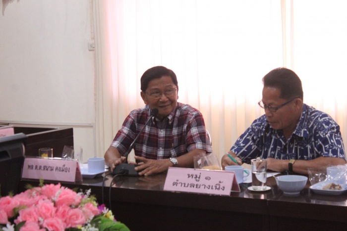 นายมนูญ บูรณพัฒนา นายกเทศมนตรีฯ คณะผู้บริหาร, ปลัดเทศบาลฯ, สมาชิกสภาเทศบาลฯ และพนักงานเทศบาลตำบลยางเนิ้ง ได้จัดให้มีการประชุมปรึกษาหารือ "วาระยามเช้า" ร่วมกับคณะกรรมการหมู่บ้านทุกหมู่บ้านในเขตเทศบาลฯ เพื่อรับทราบปัญหาความต้องการและแลกเปลี่ยนความคิดเห็นในการพัฒนาหมู่บ้าน แลกเปลี่ยนความรู้และประสบการณ์ การหาแนวทางแก้ไขปัญหาให้ตรงกับสภาพปัญหาความต้องการที่แท้จริงของแต่ละหมู่ บ้าน ประจำเดือนกุมภาพันธ์ ๒๕๕๙ เมื่อวันที่ ๒๔ มีนาคม ๒๕๕๙ ณ ห้องประชุมเทศบาลตำบลยางเนิ้ง
