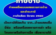 3. ภาษีป้าย ยื่นแบบแสดงรายการป้าย ตั้งแต่ 4 มกราคม 2560 - 31 มีนาคม 2560 หากยื่นแบบพ้นกำหนดมีความผิดตามมาตรา 25 แห่งพ.ร.บ.ภาษีป้าย ต้องเสียเงินเพิ่มร้อยละ 10 ของจำนวนเงินภาษี