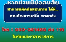 หากมีข้อสงสัย ติดต่อสอบถาม งานพัฒนารายได้ กองคลัง โทร.053-321420 ต่อ 115