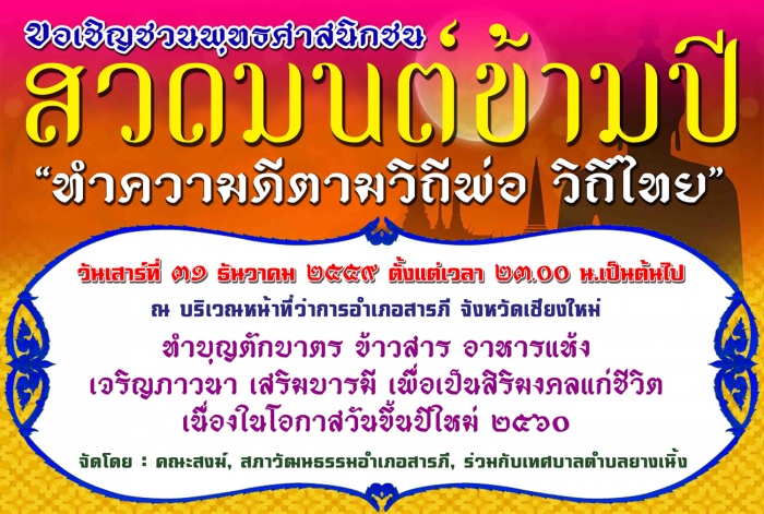 ขอเชิญชวนพุทธศาสนิกชน "สวดมนต์ข้ามปี"
