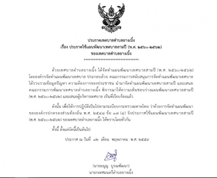 ประกาศใช้เเผนพัฒนาเทศบาลสามปี (พ.ศ. 2560-2562)
