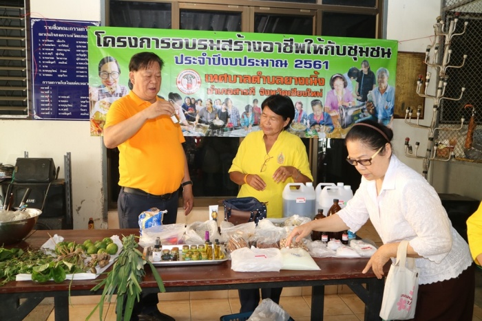 นายมนูญ บูรณพัฒนา นายกเทศมนตรีฯ ให้เกียรติเป็นประธานกล่าวเปิดโครงการอบรมสร้างอาชีพให้กับชุมชน หลักสูตร "การแปรรูปสมุนไพร" โดยเทศบาลตำบลยางเนิ้ง ร่วมกับ กศน.อำเภอสารภี ๒๕๖๑ เพื่อเป็นการขับเคลื่อนนโยบายของรัฐบาล ตลอดจนส่งเสริมพื้นฐานทางเศรษฐกิจระดับฐานรากของชุมชน โดยการเสริมสร้างทักษะ สร้างอาชีพให้แก่สตรีแม่บ้าน และประชาชน ในเขตเทศบาลที่สนใจ เพื่อเป็นทางเลือกประชาชนในการประกอบอาชีพหลักหรืออาชีพเสริม ใช้เวลาว่างให้เป็นประโยชน์ ลดค่าใช้จ่ายภายใน ครอบครัว ช่วยยกระดับชุมชนและร่วมกันสร้างชุมชนเข้มแข็งอย่างยั่งยืน ตามแนวทางปรัชญาเศรษฐกิจพอเพียงของพระบาทสมเด็จพระปรมินทรมหาภูมิพลอดุลยเดช ณ บริเวณวัดแสนหลวง เมื่อวันที่ ๑๒ กรกฎาคม ๒๕๖๑