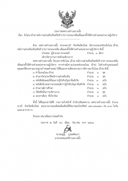 เรื่อง รับโอน (ย้าย) พนักงานส่วนท้องถิ่นหรือข้าราชการประเภทอื่นเพื่อแต่งตั้งให้ดำรงตำแหน่งสายงานผู้บริหาร (ตำแหน่ง ผู้อำนวยการกองคลัง)