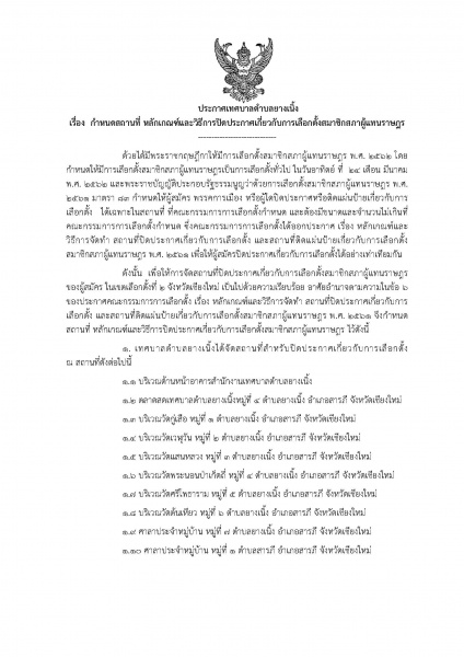ประกาศเทศบาลตำบลยางเนิ้ง เรื่อง กำหนดสถานที่ หลักเกณฑ์และวิธีการปิดประกาศเกี่ยวกับการเลือกตั้งสมาชิกสภาผู้แทนราษฎร