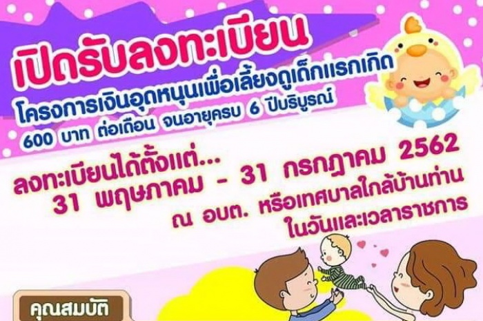 เปิดรับลงทะเบียน โครงการเงินอุดหนุนเพื่อเลี้ยงดูเด็กแรกเกิด
