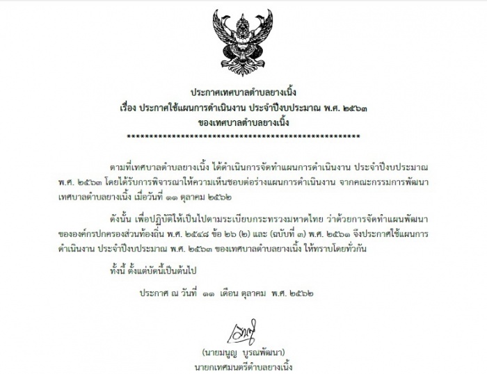| 1 | ประกาศใช้แผนการดำเนินงาน ประจำปีงบประมาณ พ.ศ. ๒๕63 | 73 KB. | 188 |