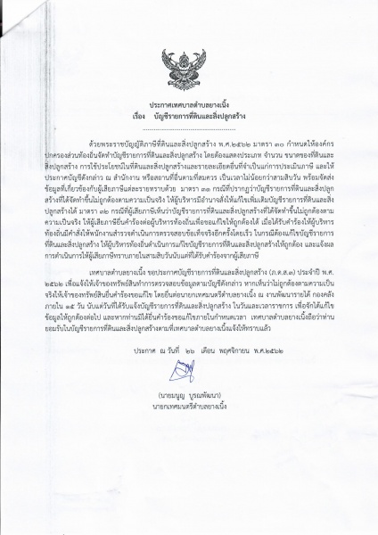 ประกาศรายการที่ดินและสิ่งปลูกสร้าง ประจำปี 2563