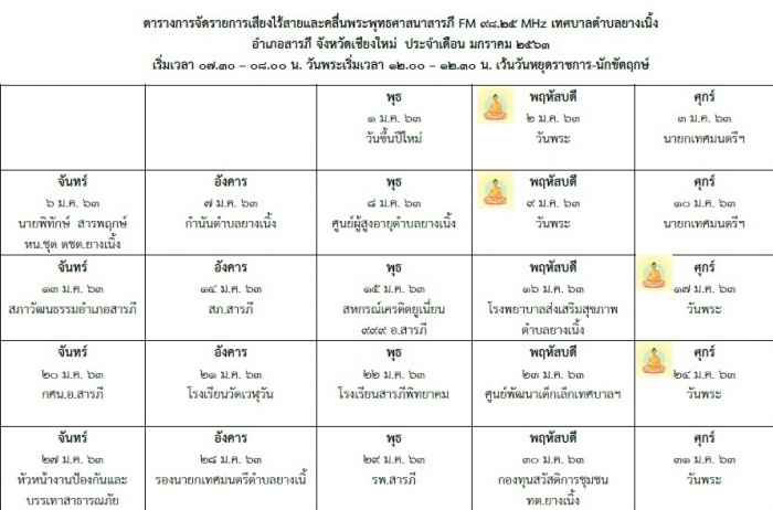 ตารางเสียงไร้สายของเทศบาลตำบลยางเนิ้ง ประจำเดือน มกราคม