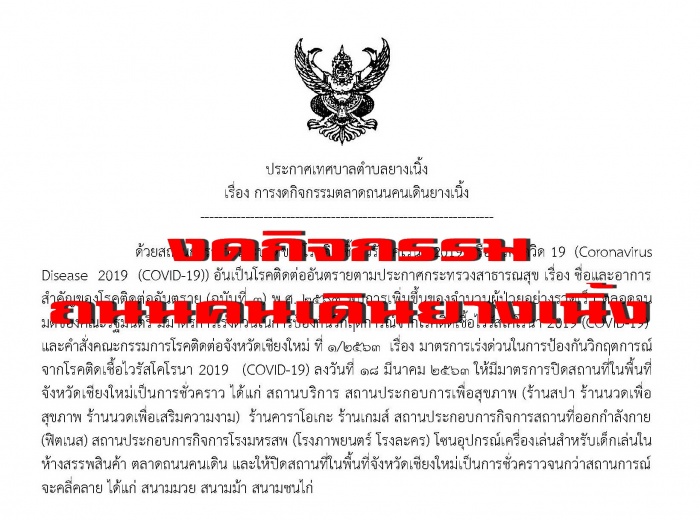งดกิจกรรมถนนคนเดินยางเนิ้ง