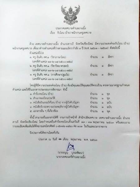 ประชาสัมพันธ์...เรื่อง...รับโอน(ย้าย) พนักงานครูเทศบาล