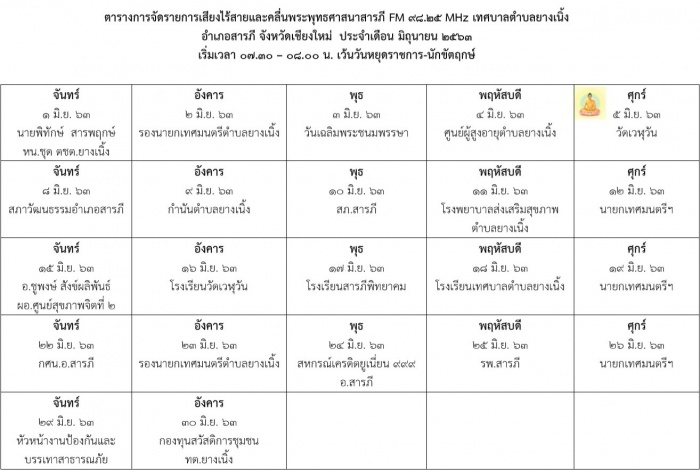 ตารางเสียงไร้สายของเทศบาลตำบลยางเนิ้ง ประจำเดือนมิถุนายน