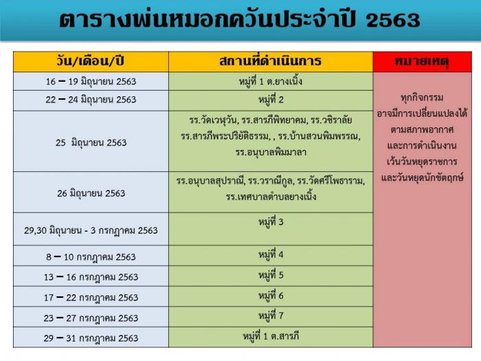ตารางพ่นหมอกควัน ประจำปี 2563