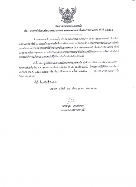 | 1 | ประกาศใช้แผนพัฒนาท้องถิ่น (พ.ศ. 2561-2565) เพิ่มเติม/เปลี่ยนเเปลง ครั้งที่ 1/2564 | 207 KB. | 133 |