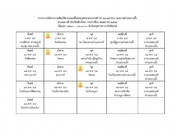 ตารางเสียงไร้สายของเทศบาลตำบลยางเนิ้ง ประจำเดือนพฤษภาคม 2564