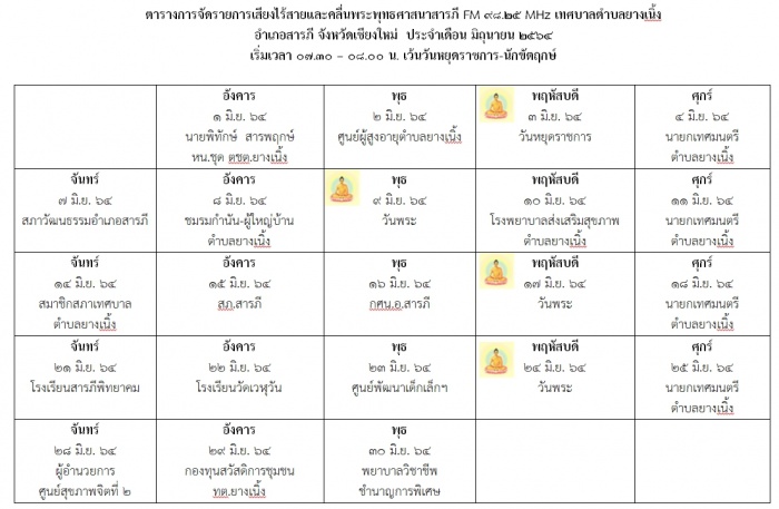 ตารางเสียงไร้สายของเทศบาลตำบลยางเนิ้ง ประจำเดือนมิถุนายน 2564