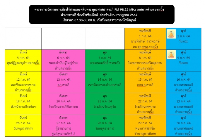 ตารางเสียงไร้สายของเทศบาลตำบลยางเนิ้ง ประจำเดือนกรกฎาคม 2564คม