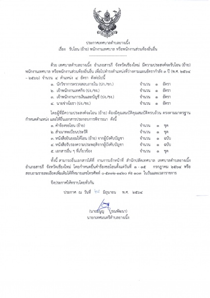 ประกาศ รับโอน (ย้าย) พนักงานเทศบาลหรือพนักงานส่วนท้องถิ่นอื่น