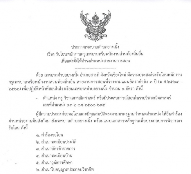ประชาสัมพันธ์ รับโอนพนักงานครูเทศบาลหรือพนักงานส่วนท้องถิ่น