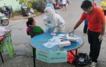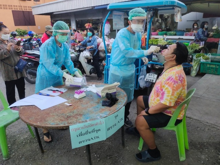 ตรวจคัดกรองโควิดด้วยชุดตรวจATK ให้กับแม่ค้าพ่อค้า และผู้ที่รับบริการที่ตลาดสดเทศบาลตำบลยางเนิ้ง