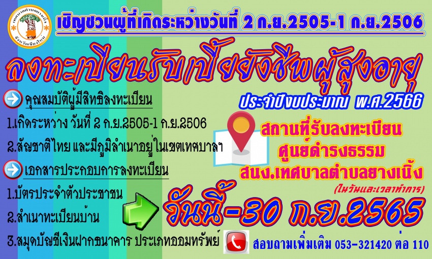 ลงทะเบียนรับเบี้ยยังชีพผู้สูงอายุประจำปี 2565