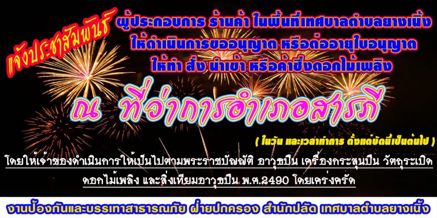 ประชาสัมพันธ์แจ้งผู้ประกอบการจำหน่ายดอกไม้เพลิง พลุฯลฯ