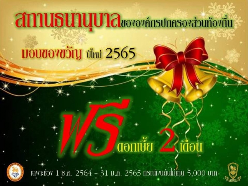 อย่าพลาด โรงรับจำนำฯ ให้ฟรีดอกเบี้ย 2 เดือน สำหรับผู้ใช้บริการตั้งแต่ วันที่ 1 ธันวาคม 2564 ถึง วันที่ 31 มกราคม 2565 นี้