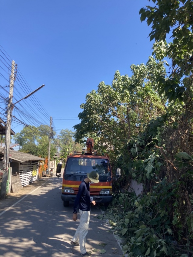งานป้องกันฯ ออกให้บริการตัดไม้หมู่ 1
